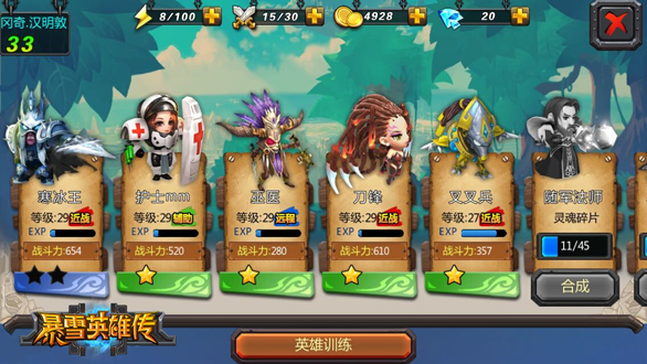 当精彩的开篇剧情结束后,您将跟随温柔貌美的护士美眉征召属于您自己的英雄团队。在游戏初期,玩家将会获得使用远程法术并可以使用全体伤害技能的“巫医”;攻高血厚、可以召唤冰龙的“寒冰王”;再配以体贴可爱、专业从事治疗工作的护士美眉,您的团队便初具规模。