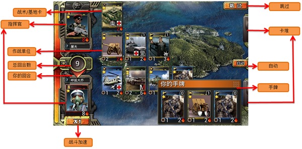 牌堆:战斗开始后,双方作战部队中除指挥官外所有的卡牌都在各自的牌堆中。(作战部队可在卡牌管理选项中配置)
