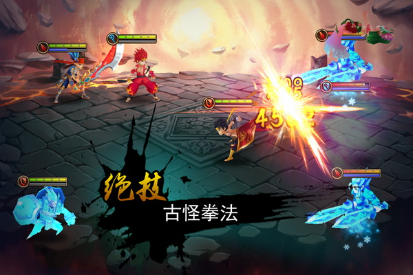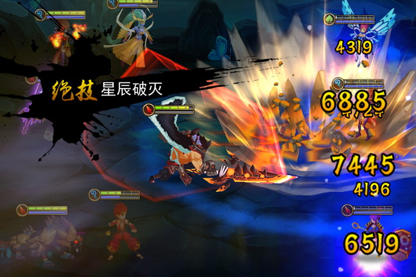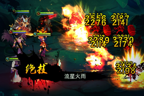 那红色的如同神魔一般的天空中挥洒而下无数小小的红星,对全体敌方造成灵攻伤害,并降低目标灵防,持续数回合。