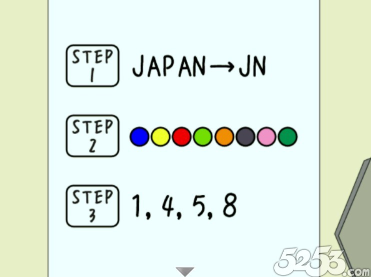 然后看右侧的那些画,根据提示一,我们将所有的单词只取第一个字母和最后一个字母。然后根据提示二,我们把这些字母按照画框的颜色排列。最后得到“WD CR TE MN PH SY CE MC”的字母排列。