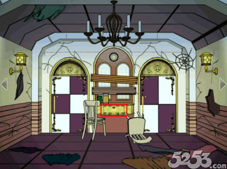 之后我们来到有两把椅子的这个房间,点击中间的桌子。