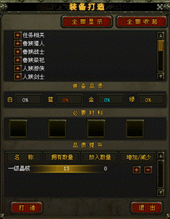 点击打造,如材料满足,不同的光芒闪过后,代表不同的品质的装备打造成功;如材料不足,系统栏里会提示“无法打造**装备”。
