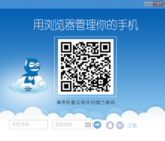 在手机上安装机客云助手,然后通过机客云助手扫描浏览器上的二维码就可以进行管理。