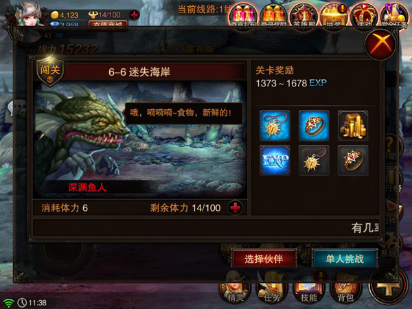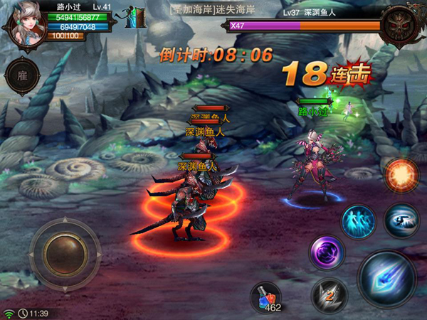 小怪数量多,分批次出现,有种层出不穷的感觉,注意不要被它们包围。与其他关卡不同时的是,BOSS深渊鱼人有三只,血量非常厚,三只鱼人通常是一起行动,攻击力虽然一般,但三只同时攻击,你的血条还是会受到蛮大威胁的。单人挑战非常危险,很难过关,最好带上小伙伴助你一臂之力。