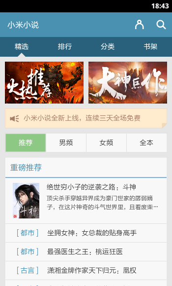 米粉了你们知道小米现在推出了一款什么吗?那就是小米小说,它号称是最全、最快、最省流量的小说阅读神器!你的手机里有吗?没有的就赶快下载使用体验一下吧!软件介绍小米小说——最全、最快、最省流量的小说阅读神器!应用上线前3天举行免费畅读(10.31-11.2